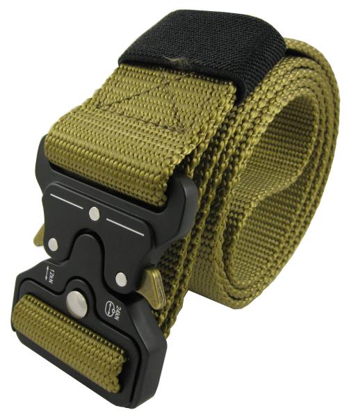 Stabiler taktischer Outdoor-Gürtel in Farbe goldsand. Die Metallschnalle öffnet sich nicht ungewollt, denn man muss beide Laschen drücken, um die Schnalle zu öffnen. Die Schnalle ist aus Vollmetall. Der Gürtel ist 115 cm lang und 38 mm (1,5 Zoll) breit.
